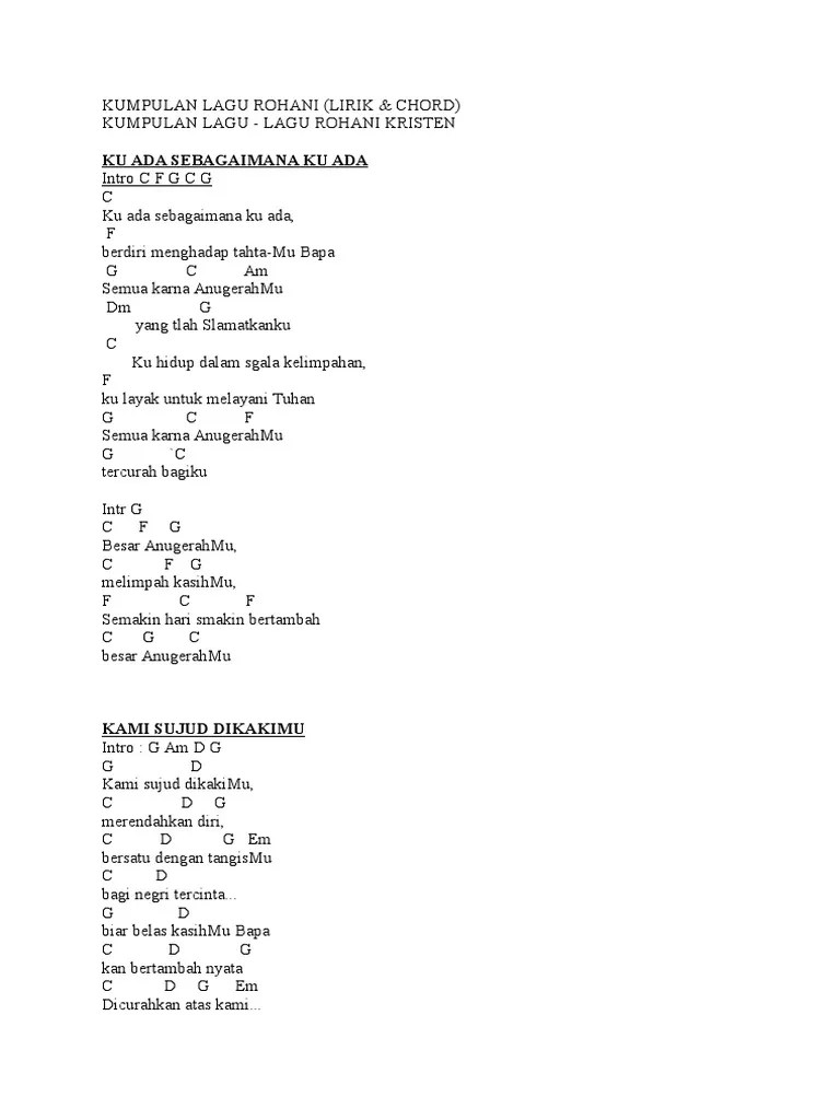 G gmaj7 g7 ku ada sebagaimana ku ada c cdim c6 berdiri menghadap tahtamu bapa d d/c g/b c semua karna anugrahmu g/d a/c# d yang tlah. Lirik lagu, kunci gitar, chord, cord, pujian rohani, pujian kristen lirik lagu, kunci gitar, chord, cord, . Besar anugrahmu f bb/d c/e melimpah kasihmu f bb/d c semakin hari bb bbm semakin bertambah f/a bb besar anugrahmu. 0 orang menyukai akor lagu ini. Kumpulan lirik dan akor lagu rohani.